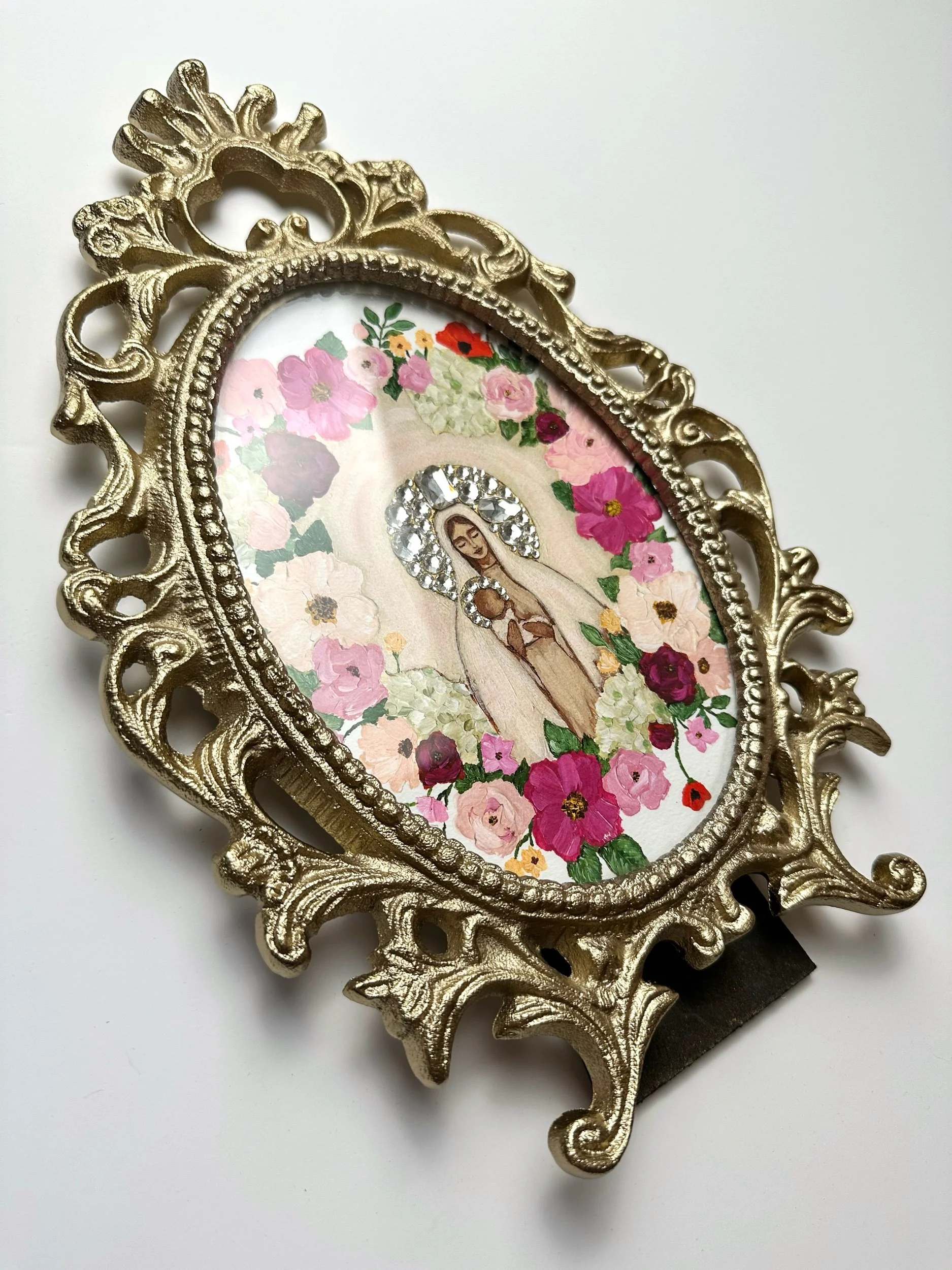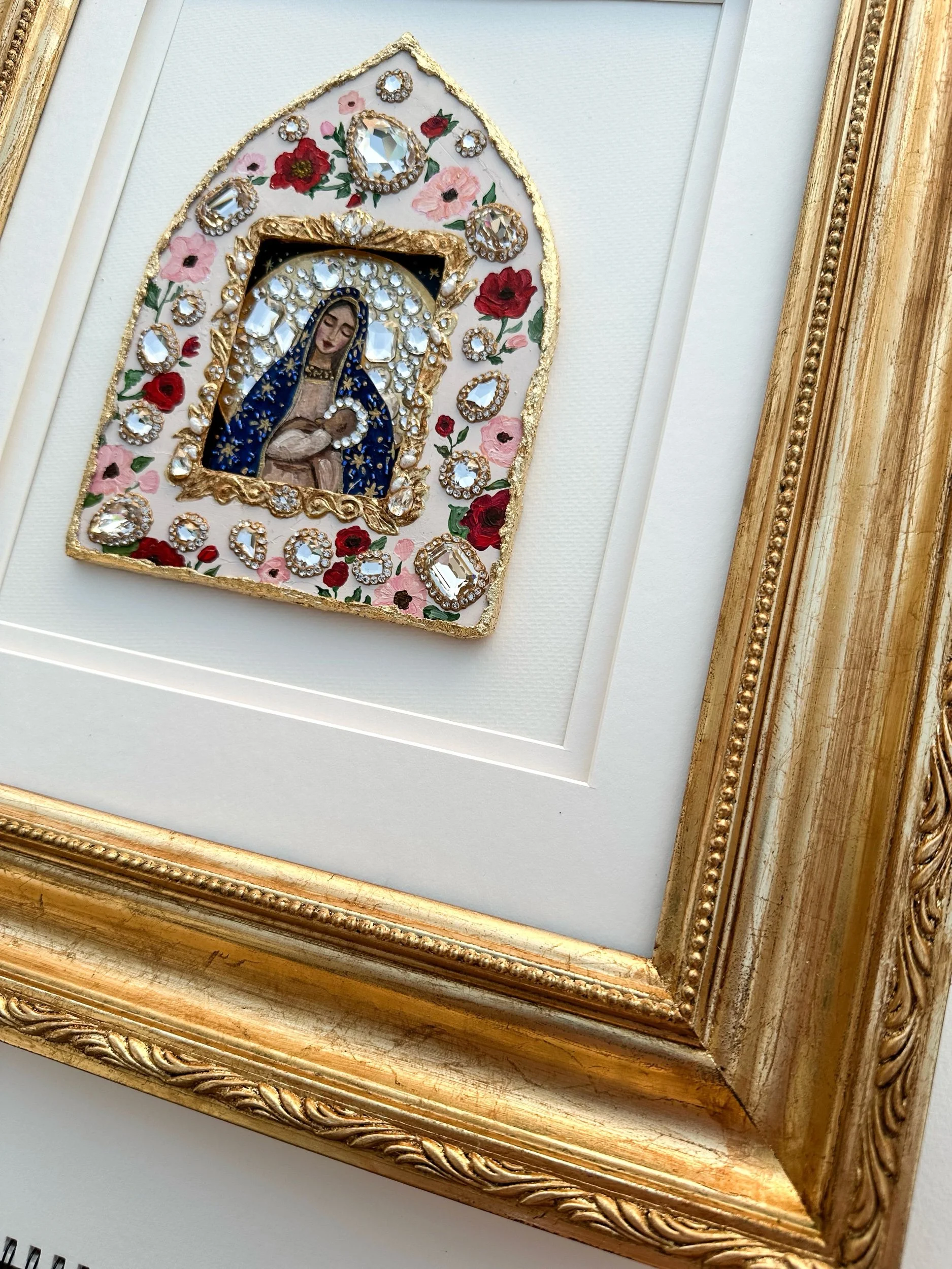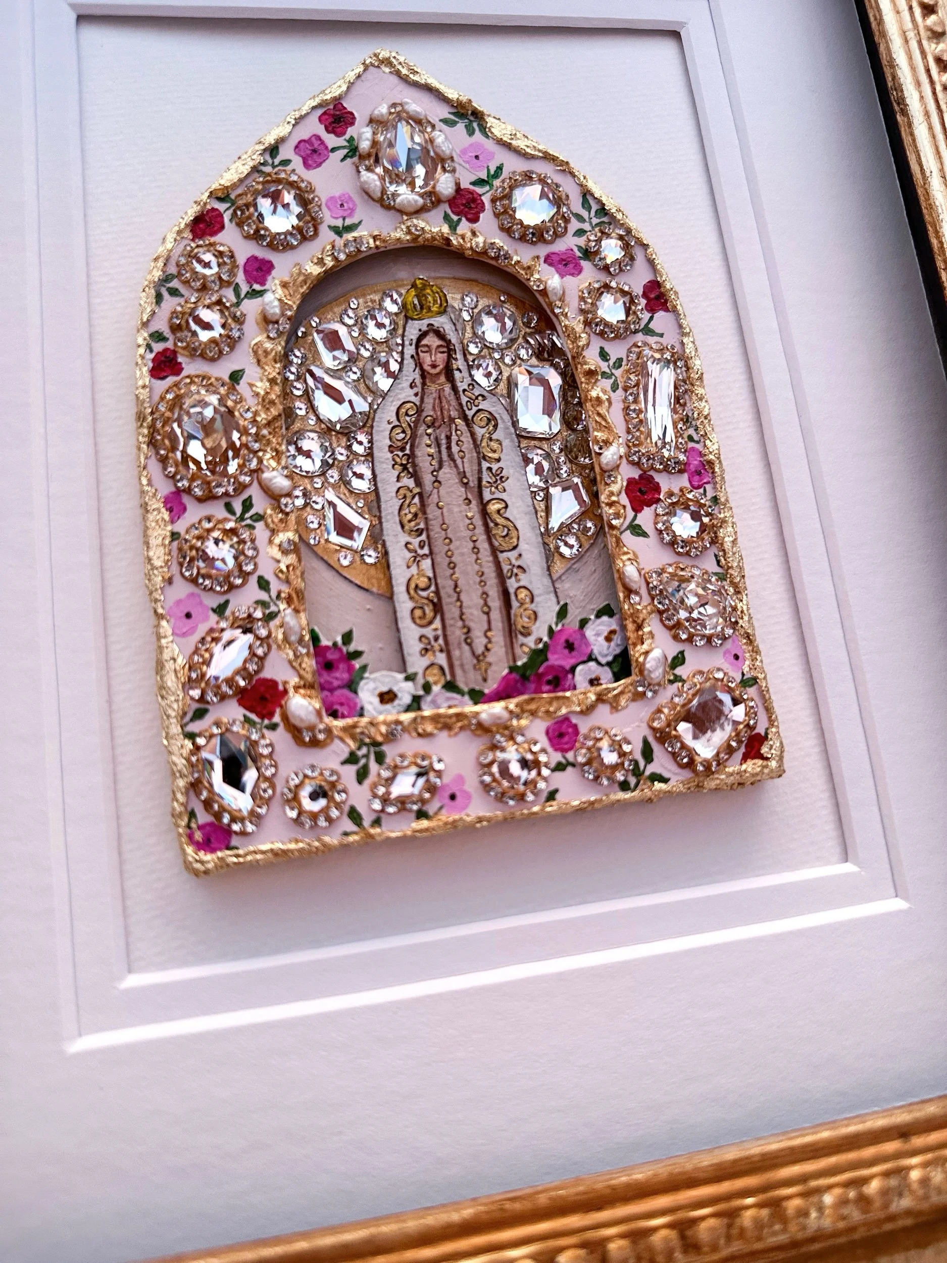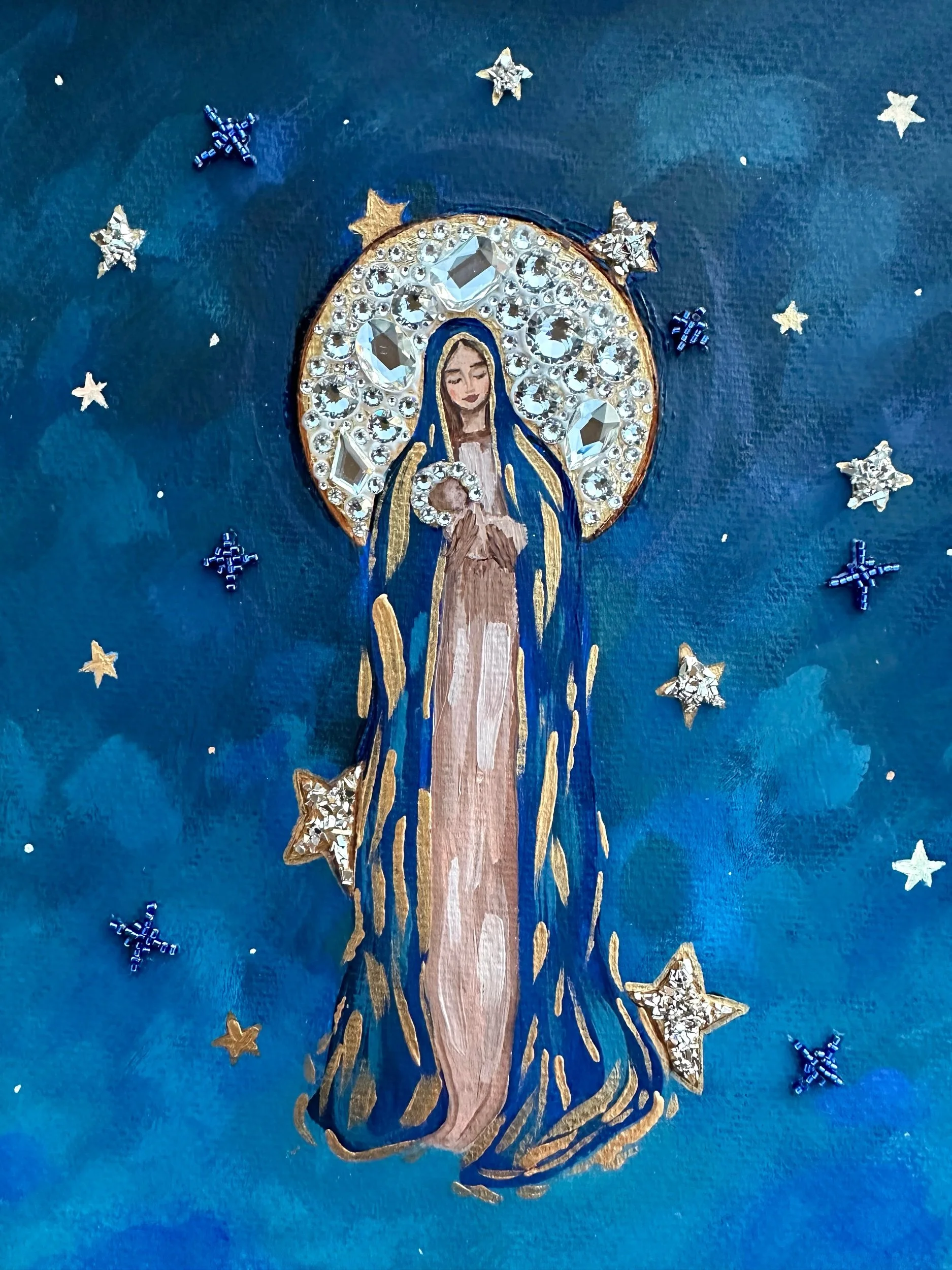 Available works Categories: All Available Originals Crystallized Prints Prints Without Crystals Gift Items Notebooks Magnets Available works All | Available Originals | Crystallized Prints | Prints Without Crystals | Gift Items | Crystallized Paper Print - “His Steadfast Love Endures Forever” Original Painting - Jeweled Shadowbox #1 Original Painting - Shrine on paper #4 - Our Lady of Fatima Original Painting - Shrine on Paper #3 - Our Lady of Fatima Original Painting - Shrine on Paper #2 Sold out Gold painted frame - “Our Lady of Guadalupe w/Stars” - 3x4 print Sold out Gold painted frame - “Our Lady of Guadalupe” - 3x4 print Sold out Gold painted frame - “She Holds You Now” - 3x4 print Sold out Preorder - 3x5 “Mother of Mercy” print with crystals and blue glitter “Queen of Heaven” - Original painting on canvas - 22x28” Sold out Original on paper- “His Steadfast Love Endures Forever” (Psalm 136) Sold out “Tabernacle” 8x10 Notebook SPANISH notebook (Without Crystals) Mini Crystallized Paper Print attached to acrylic frame - “Tabernacle print” ENGLISH notebook (WITHOUT CRYSTALS) - Our Lady of Guadalupe #2 Notebook